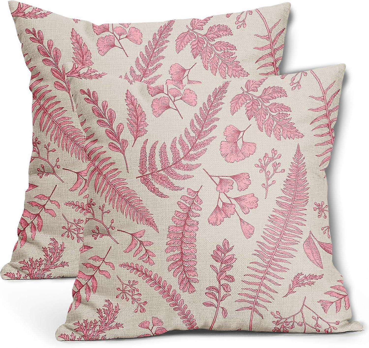 Pink Leaf Plant Pillow Covers 20X20 Inch Set of 2 Tropical Fern Herbs Botanical Leaves Floral Decorative Pillow Cases Vintage Cushion Case Farmhouse H