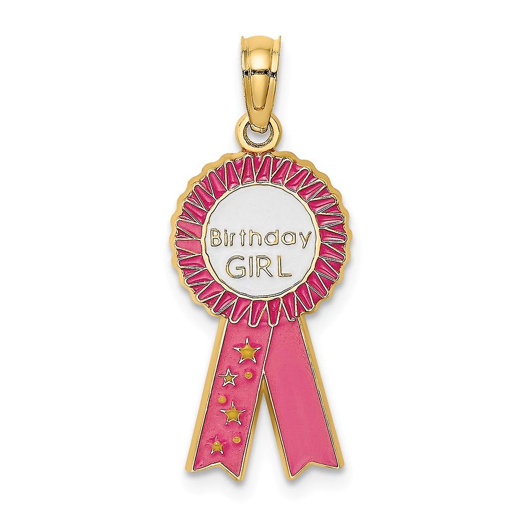 14k Gold Birthday Ribbon With Pink Enamel Charm 23.5x10.7mm Wide Pendant Necklace for Women