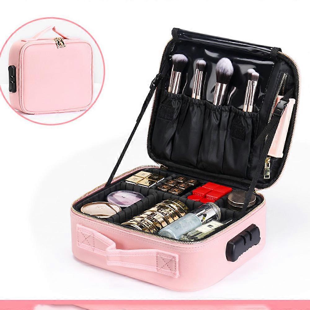 (Pink) With Combination Lock-Cosmetic Bag Travel Cosmetic Organizer Professional Cosmetic Organizer Bag Waterproof Portable Cosmetic Bag With Detachab