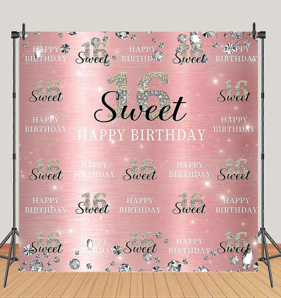 Pink Sweet 16th Birthday Party Photography Background Rose Gold Diamonds Glitter Girls Princess Sixteen Years Old Age Banner Decoration Backdrops Gla