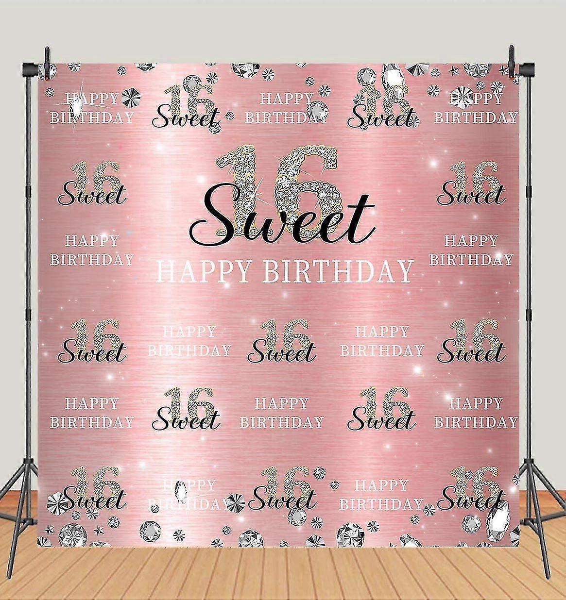 Pink Sweet 16th Birthday Party Photography Background Rose Gold Diamonds Glitter Girls Princess Sixteen Years Old Age Banner Decoration Backdrops Gla