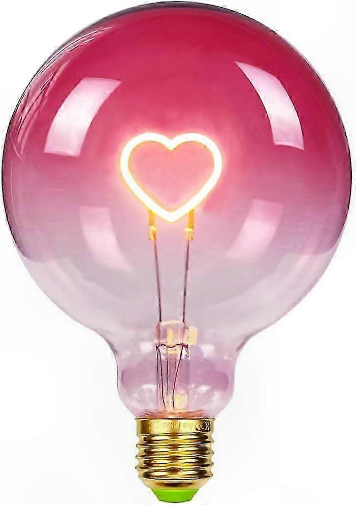 Pink Heart Filament G125 LED Globe Bulb, Dimmable 2W E27 Decorative Light, 220-240V