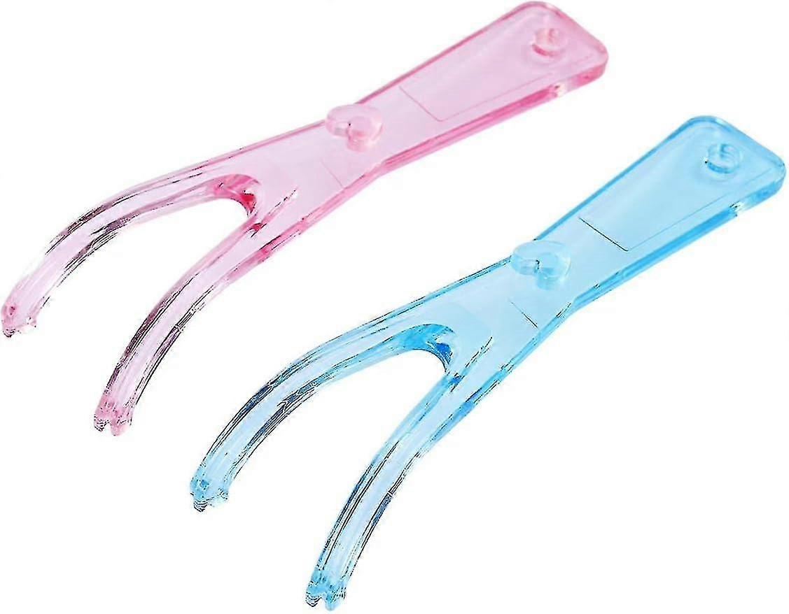 (pink+blue)2pcs Reusable Dental Floss Holder Floss Pick Dental Products Teeth Cleaning Dental Floss