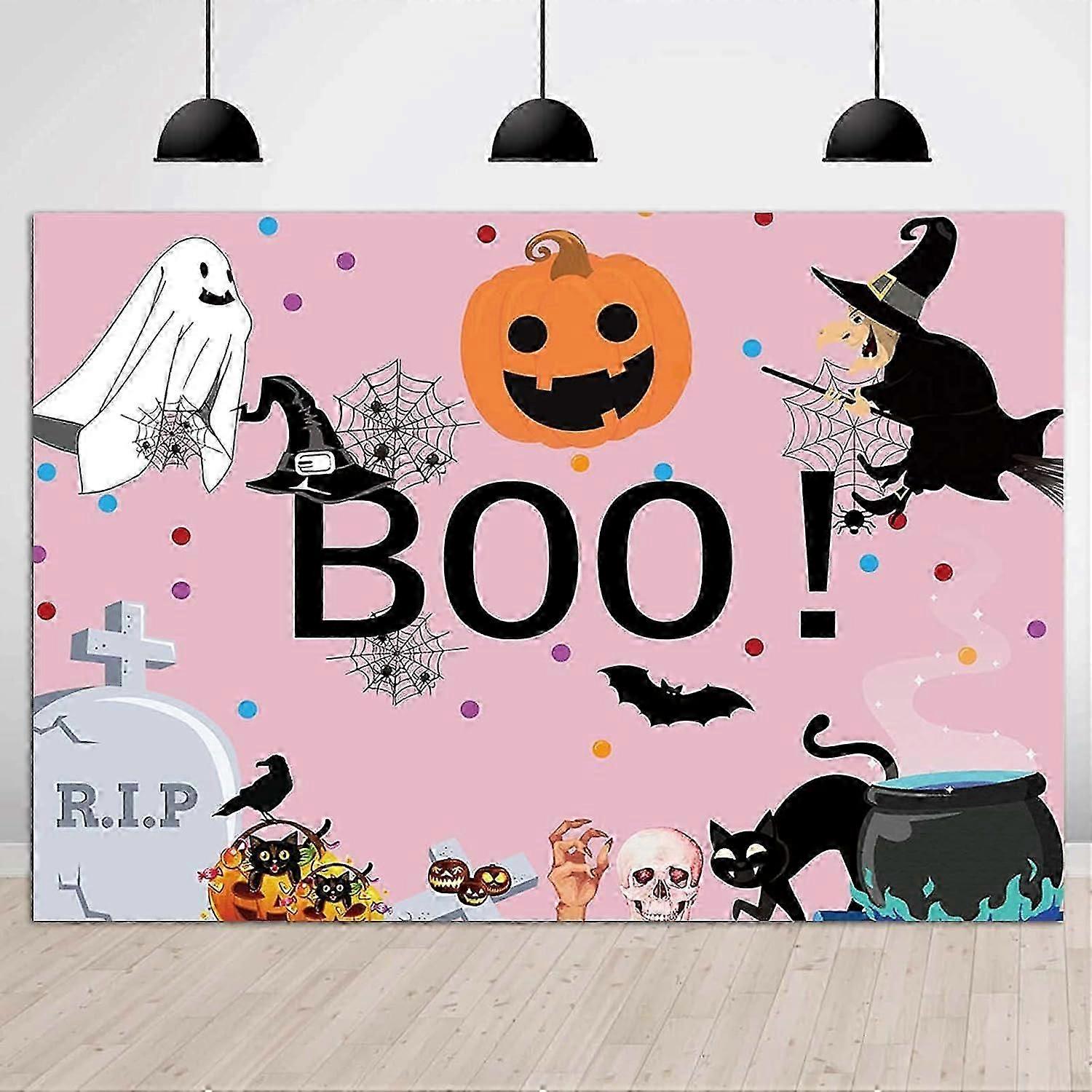 Pink Boo Backdrop Cartoon Pumpkin Ghost Witch Photography Backdrop Halloween Themed Baby Girls Baby Shower Hallowmas Trick or Treat Photo Studio Backg