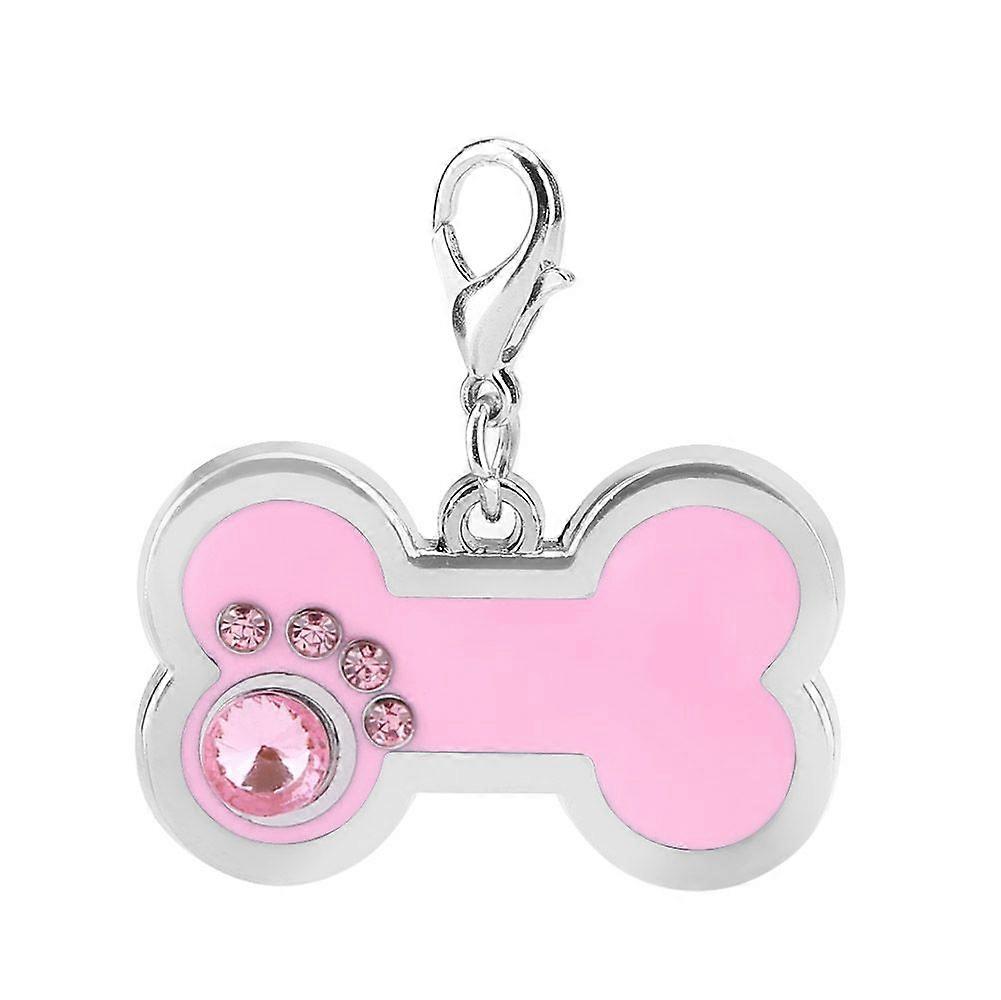 Pink Alloy Pet ID Tag Dog Cat Animal Name Identification Pendant Bone Shape