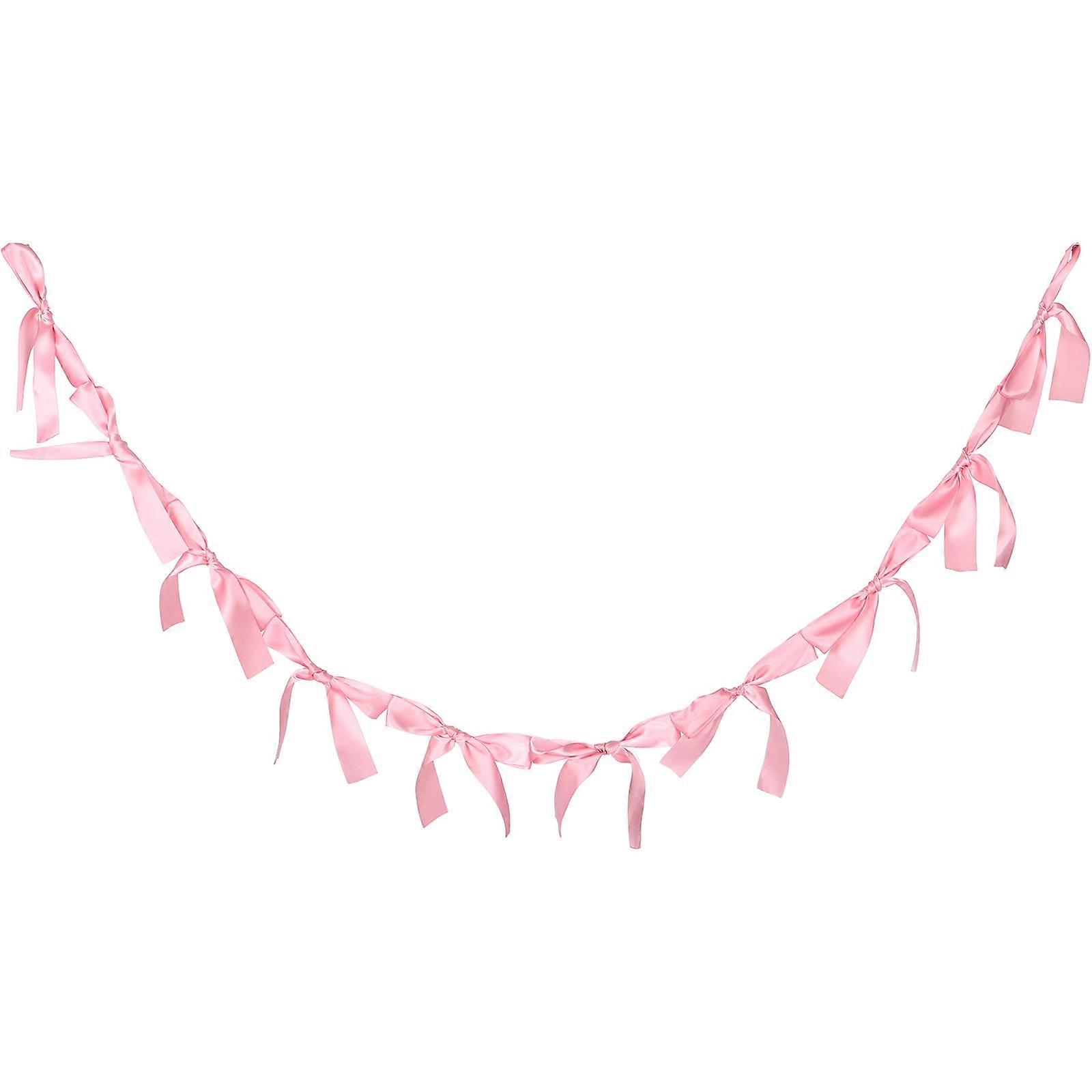 Pink Woven Fabric Bow Banner for Party Wall Decor Reusable Elegant Garland 3.5ft