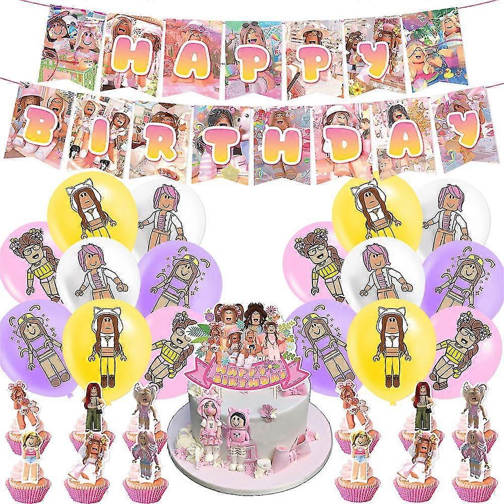 Pink Roblox Gaming Womens Girls Birthday Party Decorations Balloon Banner Cake Toppers Set Party Supplies Kits