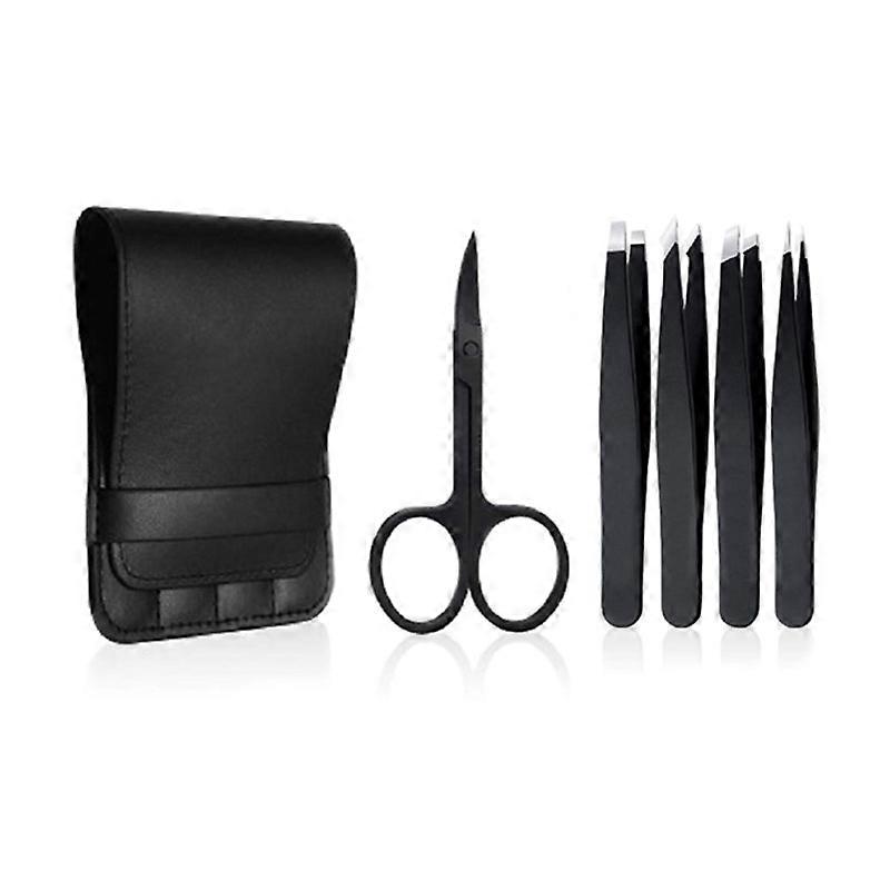 Tweezers Set - Professional Stainless Steel Tweezers for Eyebrows - Great Precision for Facial Hair (Black)