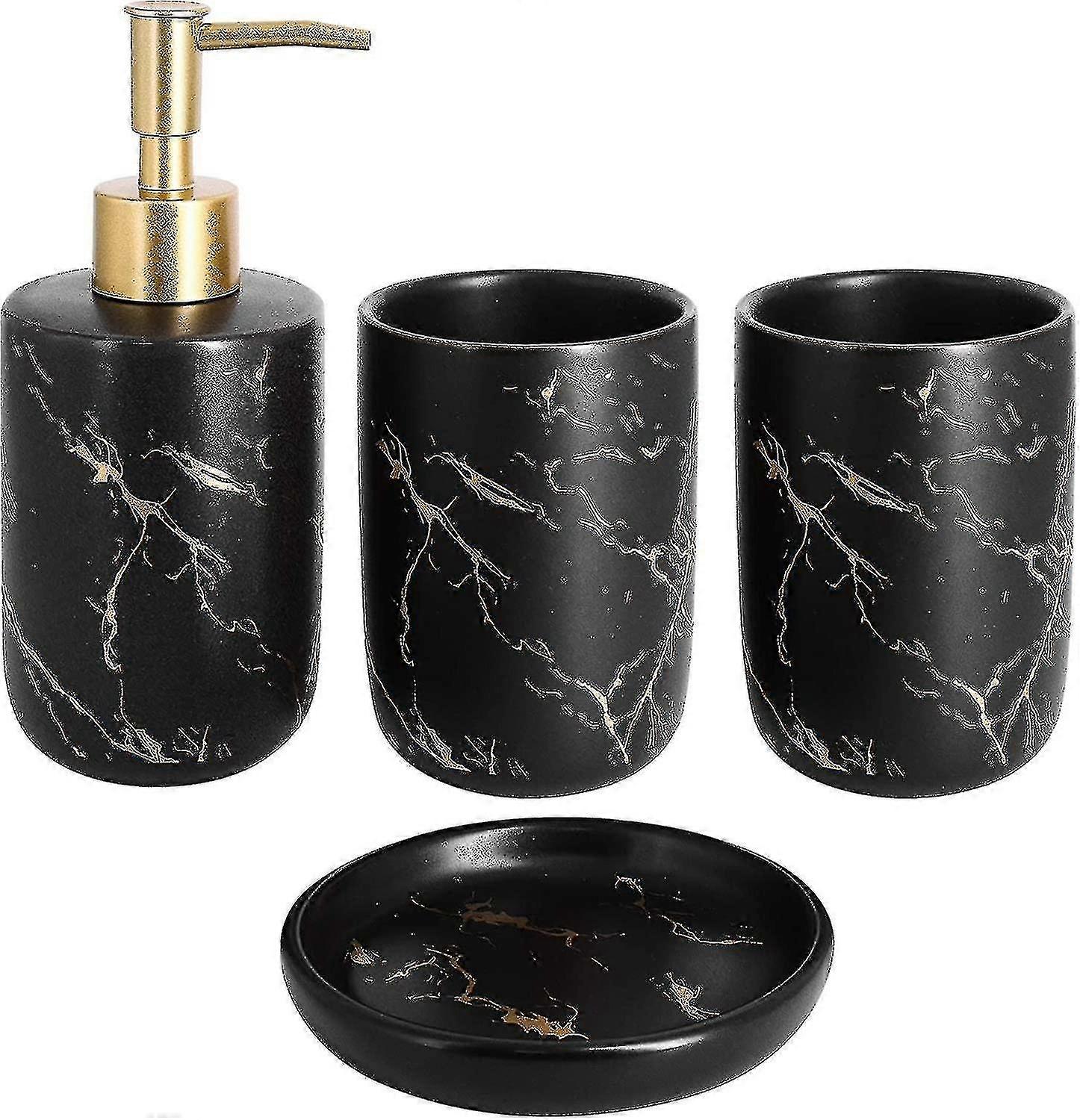 Piece Ceramic Bathroom Accessory Set Including Soap Dispenser, Tumbler And Soap Dish (black)