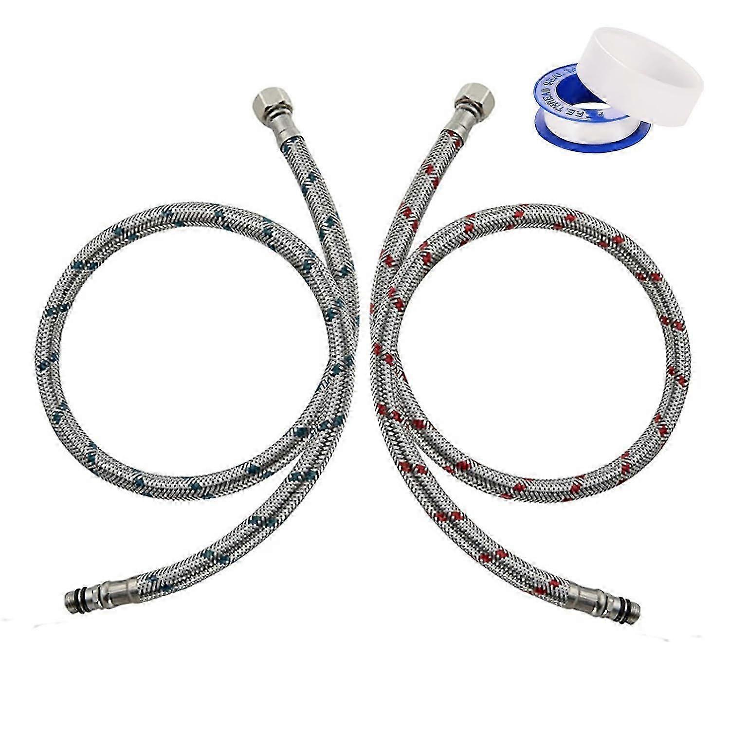 Pieces Flexible Faucet Connection Hoses G3/8 x M10 80cm, Stainless Steel Braided Faucet Hoses with Sealing Tape Connection Hose for Kitchen Shower Si