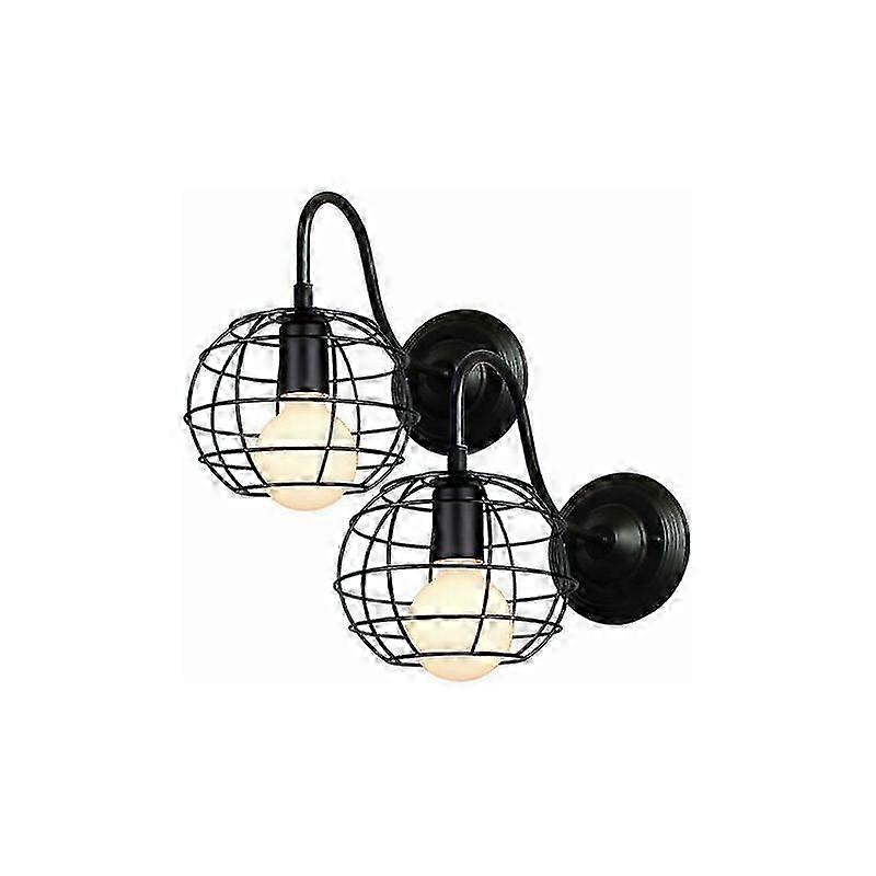 Pieces Industrial wall lamp E27 bedroom living room entrance hall loft cage light - round - black 2025