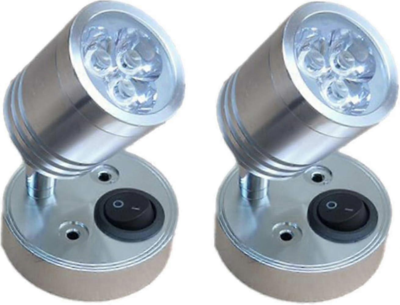 Pieces 12V LED Spot Reading Lamp Wall Bedside Lamp Adjustable Switch Motorhome e Cylindrical Flexible Interior Lighting for Boat Motorhome (Silver)