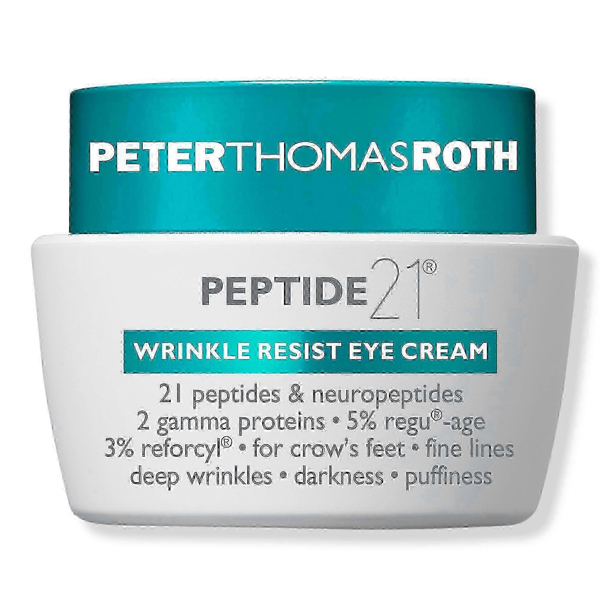 Winner of the 2021 Allure Beauty Award for Best Line Smoothing Eye Cream, this Peter Thomas Roth eye cream fights wrinkles with 21 Peptides and Neuropeptides to help visibly reduce the look of crow's feet, fine lines and deep wrinkles.BenefitsGamma Proteins harness the power of Asian natto gum to help improve the look of elasticity, radiance, uneven skin tone and texture5% Regu-Age works to help diminish the look of darkness and puffiness3% Reforcyl helps moisturize and smooth the look of aging skin around the eye areaKey Ingredients21 Peptides & Neuropeptides - Help reduce the look of crow's feet, fine lines and deep wrinkles5% Regu-Age - Works to help diminish the look of darkness and puffiness3% Reforcyl - Moisturizes and helps smooth the look of wrinkled aging skinActive Ingredients: Apply twice daily to eye area with continued use. Precautions: For external use only.Suggested Use: Winner of the 2021 Allure Beauty Award for Best Line Smoothing Eye Cream, this Peter Thomas Roth eye cream fights wrinkles with 21 Peptides and N. . .Expiration Date: We have fresh stock each week with exceptional expiration dates prior to APRIL 2024. Products will expire no later than six months to 1 year after receipt.Product Packaging: Please note that some manufacturer may often change their packaging. This product may arrive different from what is pictured. We will always ship the most up-to-date packaging to our customers. Please contact us if you have any questions about this product or would like to request an older version of this product.Healthcare Disclaimer: Content on this site is for reference purposes only. OTC Shoppe Express does not represent or warrant that the nutrition, ingredient, allergen and other product information on our Web or Mobile sites are accurate or complete, since this information comes from the product manufacturers. On occasion, manufacturers may improve or change their product formulas and update their labels. We recommend that you do not rely solely on the information presented on our Web or Mobile sites and that you review the product's label or contact the manufacturer directly if you have specific product concerns or questions. If you have specific healthcare concerns or questions about the products displayed, please contact your licensed healthcare professional for advice or answers.