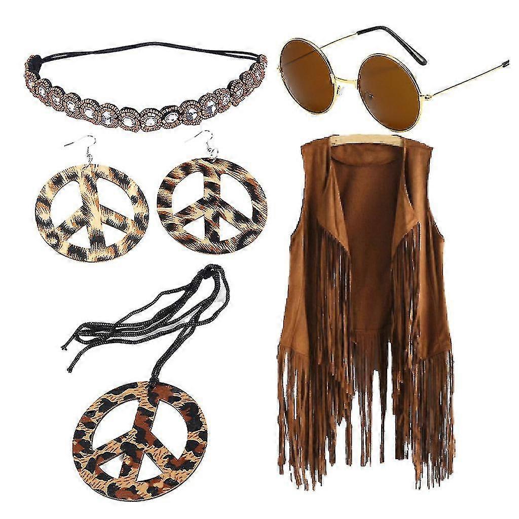 Hippie Costume Set Women, 60s 70s Hippie Costume Set Bohemian Hippie Costume Ladies Accessoriesm)