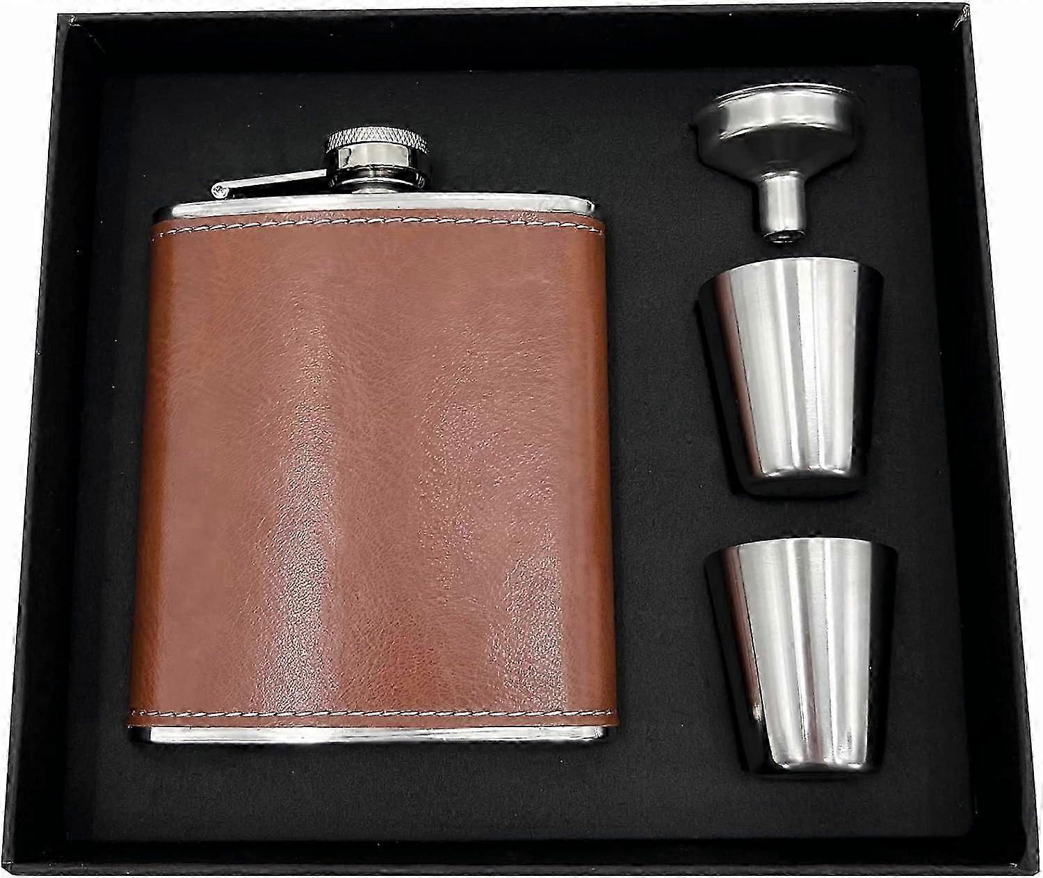 Hip Flask, 8oz Brown Flasks with Funnel, 100% Leakproof Stainless Steel Wine Pot, Portable Pocket Le