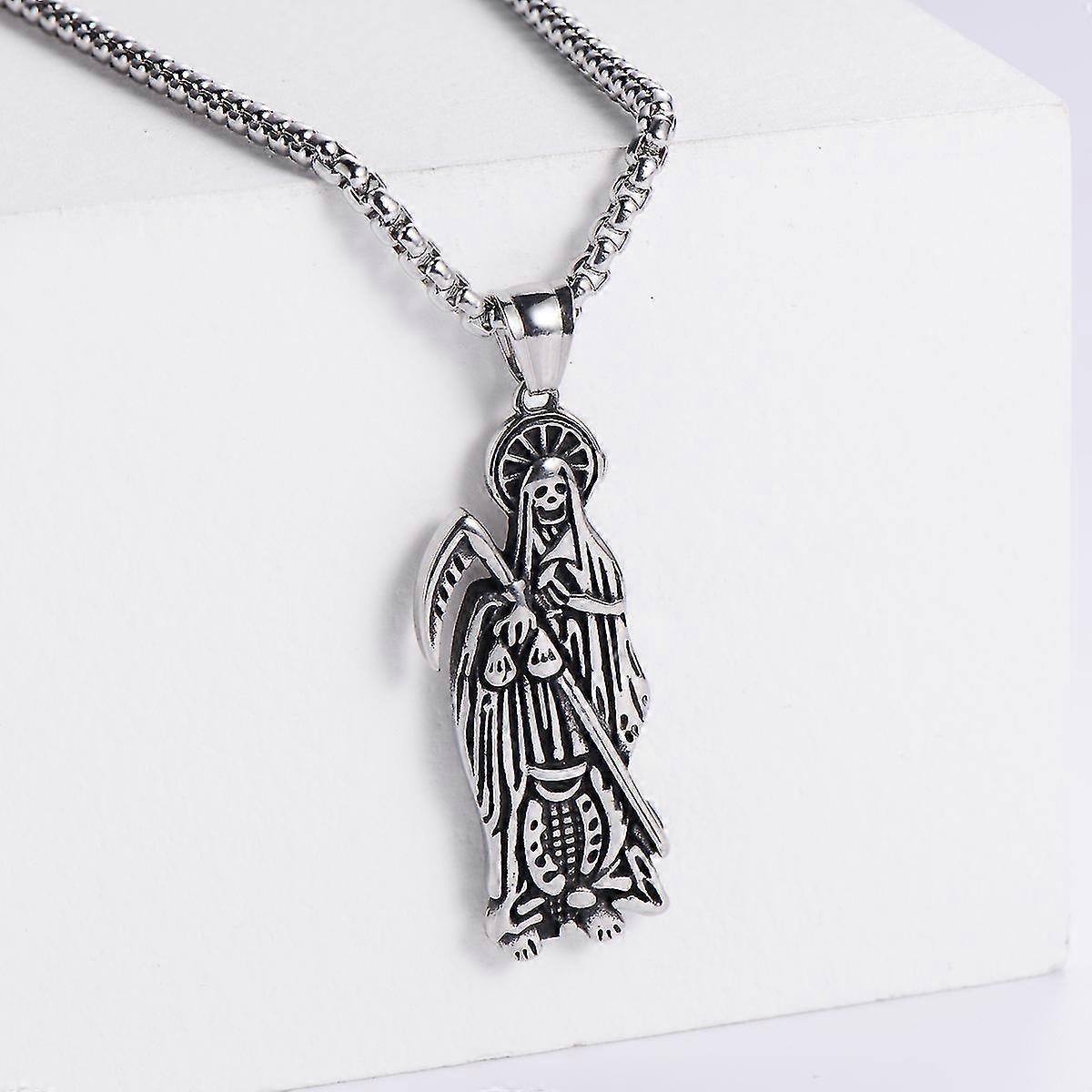 Hip Hop Vintage Golden Holy Saint Death Santa Muerte Skull Biker Pendant Necklace Stainless Steel Men Women Religious Jewelry-In Stock