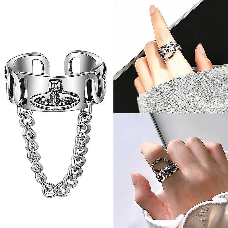 Hip Hop Chain Binding Open Ring For Women Girls Silver Geometric Simple Finger Rings Trend Jewelry Party Decorations