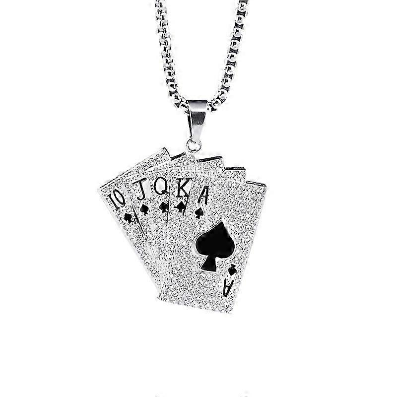 Hip Hop Nightclub Bar DJ Playing Card Poker Dog Tag Pendant Necklace