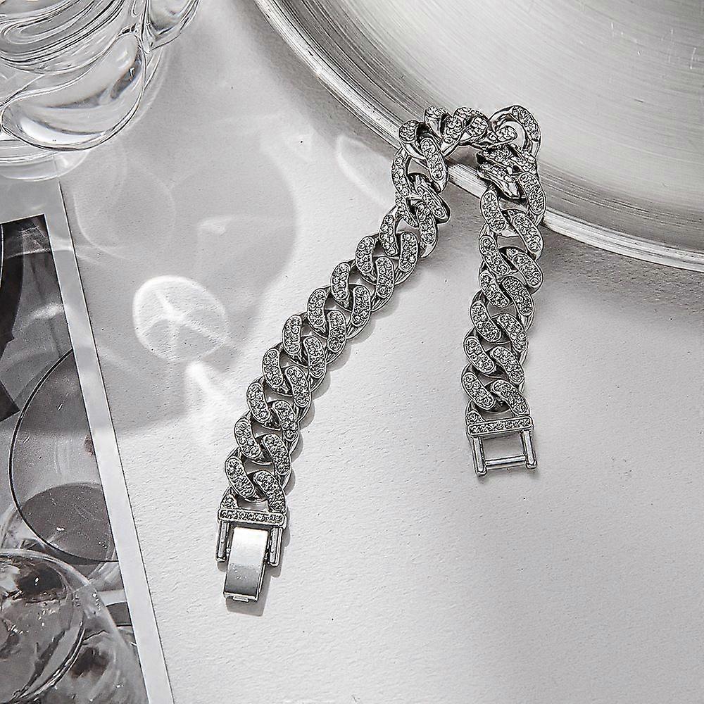 Hip-hop personality full diamond Cuban bracelet Men's high-end charm bracelet wristband bracelet titanium steel bracelet A/silver