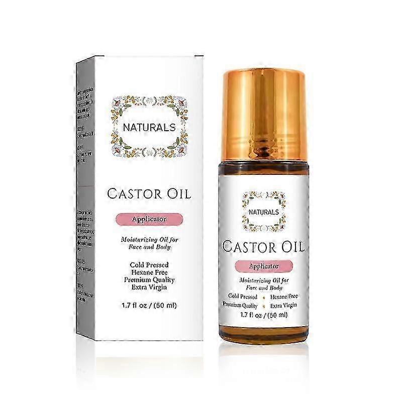 Castor Oil Roll On, Pure for Skin,Brows & Lashes and less mess Castor Oil Packs,Hexane-Free,Cold-Pressed 1.7oz (50mL)