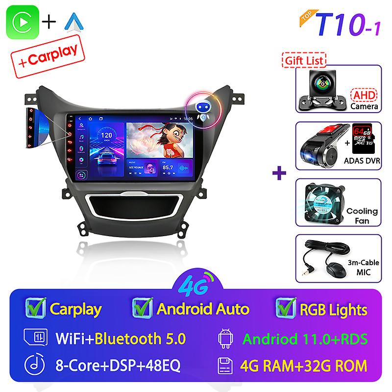 Warranty : 365 daysAccessories : Power Cable/Frame/GPS/RCA CablePreset Station : FM 87.50Tuner Type : AM/FMBuilt-in DVD Player : NoBuilt-in CD player : NoChipset : 8-core 2*475+6*A55Processor Speed : 1.8GhzProcessor Type : Octa-UIS7862(8-core 2*A75+6*A55Is touch screen : YESBuilt-in Screen : YESCategory : Car Multimedia PlayerTF/Micro SD Slot : 2Din : Double DinRAM : 8G/6G/4G/2G/1GInterface : USBSpecial Feature : Wifi Function,Support Steering Wheel Control,Support 3G Network,Support 4G Network,Support Can-BusOperating System : Android 11Out Power : 4*50WVoltage : 12VMaterial Type : plasticItem Weight : 1.9kgItem Size : 24cm*20cm*12cmMax External Memory : 128GROM : 128GSpecial Features : Built-in GPS,Mobile Phone,MP3 PlayersDigital Media Format : Mp3,MP4,WMA,JPEGOSD Language : Chinese (Simplified),Chinese (Traditional),Albanian,Arabic,Azeri,Irish,Estonian,Belarusian,Icelandic,Polish,PERSIAN,Boolean text (Dutch South Africa),Danish,German,Russian,French,Filipino,Finnish,Georgian,Haitian Creole,Korean,Dutch,Galicia,Czech,Latin,Latvian,Romanian,Maltese,Malay,Macedonian,Norwegian,Portuguese,Japanese,Swedish,Serbian,Slovak,Slovenian,Swahili,Thai,Turkish,Welsh,Ukrainian,Hebrew,Greek,Spain's Basque,Spanish,Hungarian,Italian,Hindi,Urdu India,English,VietnameseResolution : 1024*600/1280*720PDisplay Size : 9"Origin : Mainland ChinaFor Vehicle Brands/Model : HYUNDAIHyundai Model : ElantraElantra-Year : 2010,2011,2012,2013,2014,2015Certification : CESuitable Vehicle Type: : For Hyundai Elantra Avante I35 2011-2016CPU: : A7 1.8-2.5GHz x8T3 system 8 core : 1GB+16GB Android 10T6 system 8 core : 2GB+32GB Android10.0T10-1 system 8 core : 4GB+32GB Android11T10-2 system 8 core : 4GB+64GB Android11T10-3 system 8 core : 6GB+128GB Android11T10-4 system 8 core : 8GB+128GB Android11Function 1: : DSP funtionFunction 2: : Floating windowFunction 3: : Split ScreenFunction 4: : WifiOriginal Steering Wheel Control: : Support