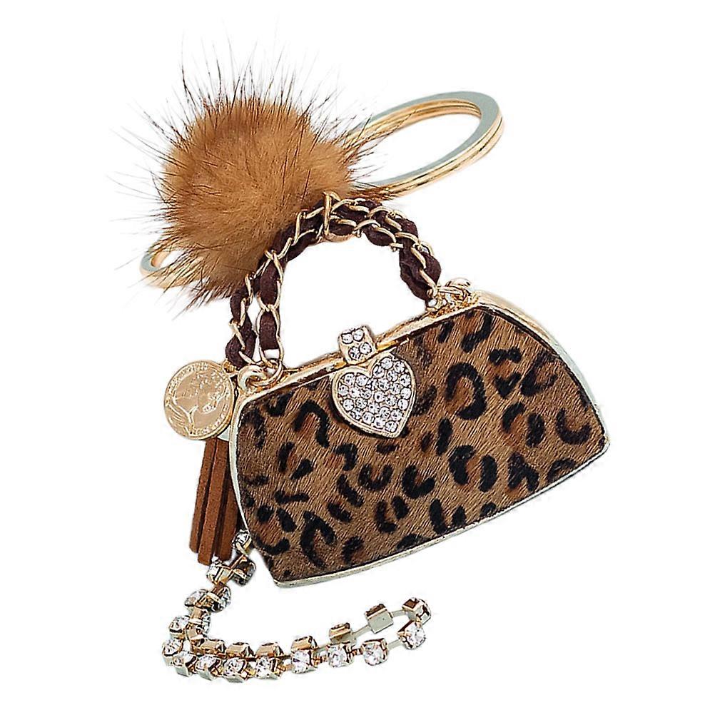 Leopard Print Key Chain Pendant Handbag Shape Keyring for Bag Decoration Soft Feel Versatile Use for Keys and Bags