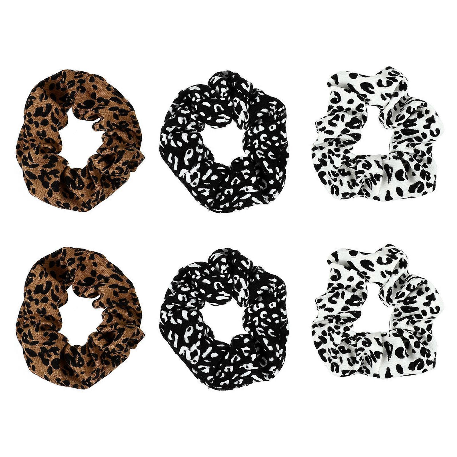 Leopard Print Hair Scrunchies Set of 6 Elastic Bands for Women Stylish Ponytail Holders Daily Wear Party Wedding Fashion Looks