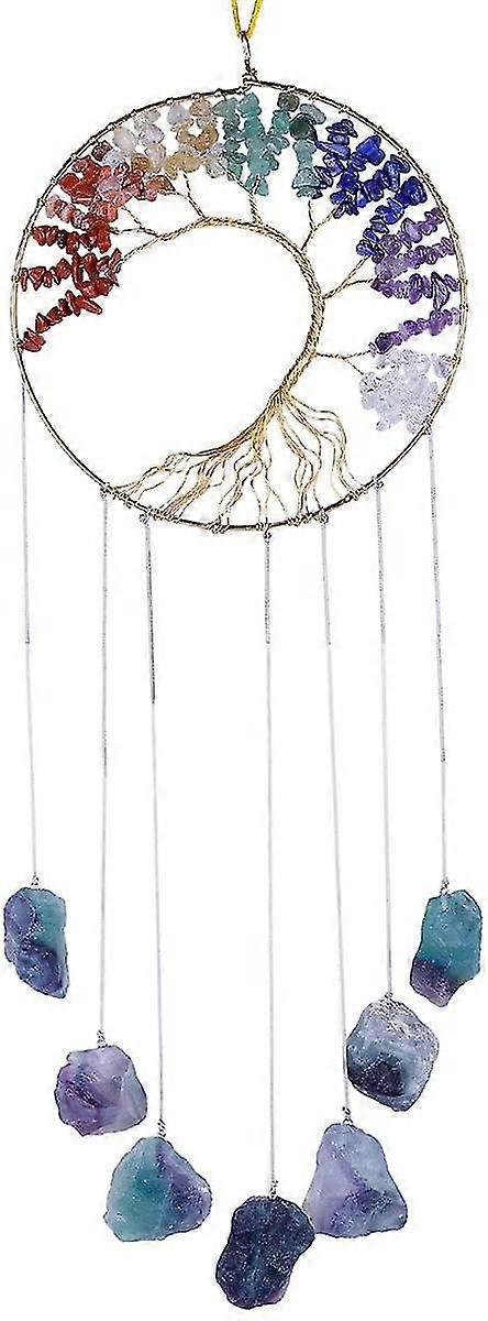 Healing Crystals Tree Of Life Wall Hanger Tumbled Gemstones Meditation Hanging Ornament Window Ornament Wedding Souvenir Home Decor, Fluorite