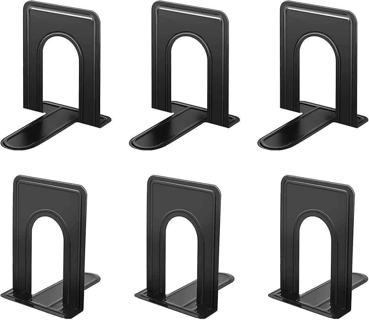 Bookends, Heavy Book Ends for Shelves, Non-Slip Base, Black, Perfect for Library, Office, Home, School, 3 Pairs of JIKIOU Black