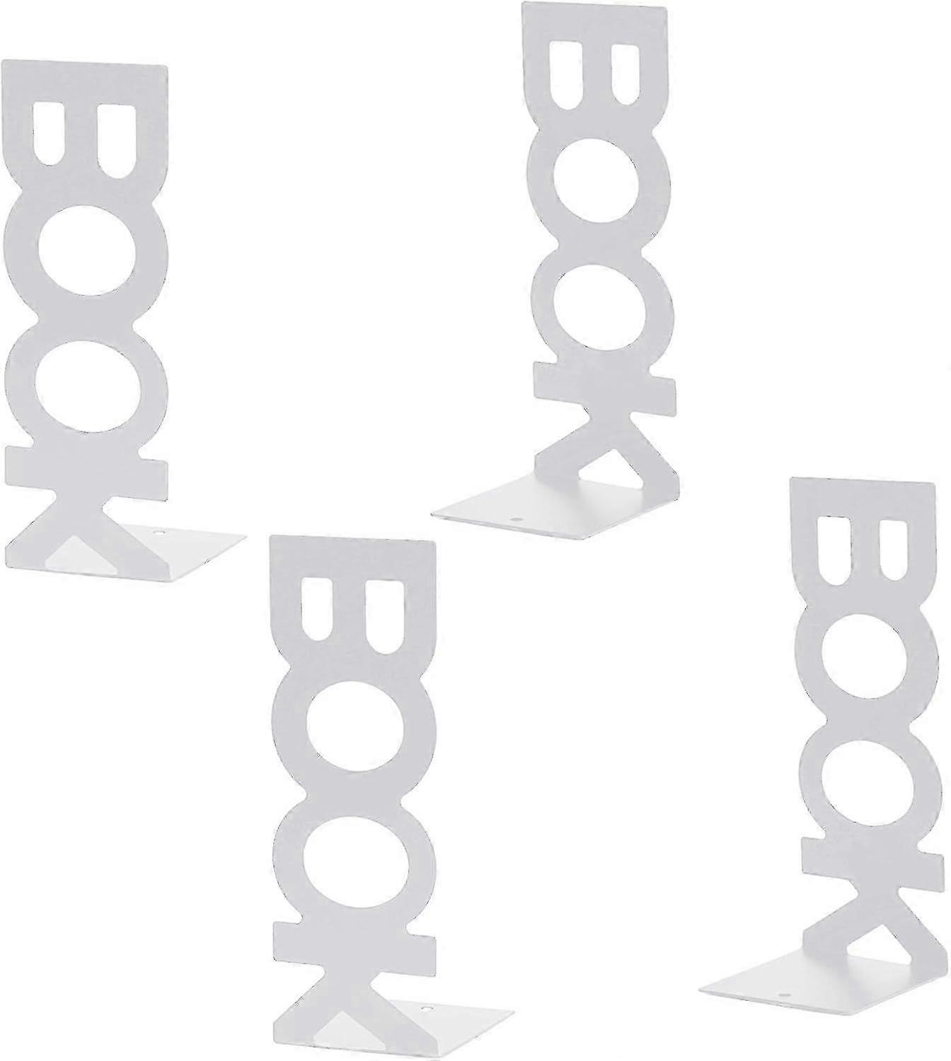 Book Ends, 2 Metal Bookends for Shelves, Non-Skid Art Stand, 4-Piece Set-White