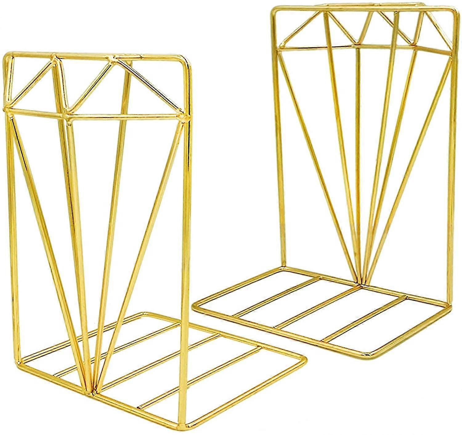 Bookends Metal Gold Bookcase Collection - 3d Stereo Diamond Design, Ideal For Organizing Books, Magazines, Cds, Etc. For Home Office Decoration (gold)