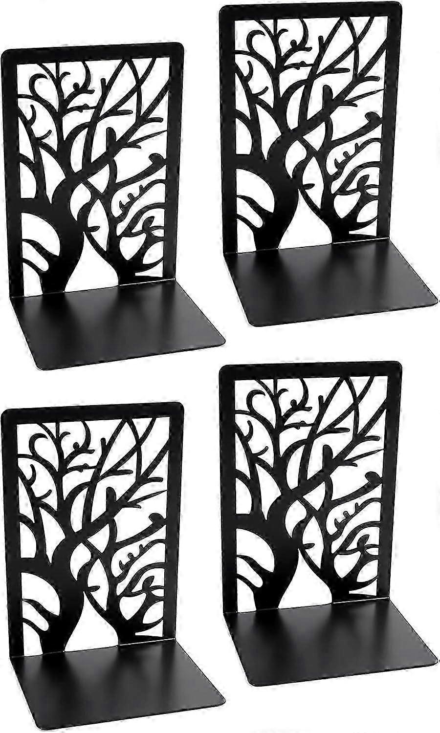 Bookends Metal Book Ends Tree Branches Design Modern Book Stopper, Non-Skid Heavy Duty Book Shelf Holder Black (2 Pair/4 Pieces, Large)