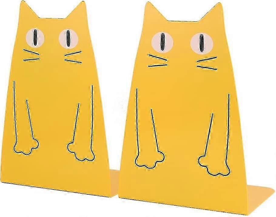 Bookends Yellow Pair Non-slip Heavy Metal Durable Sturdy Strong Books Organizer Super Cute Cat Bookshelf Decor Decorative Bedroom Library Office Schoo