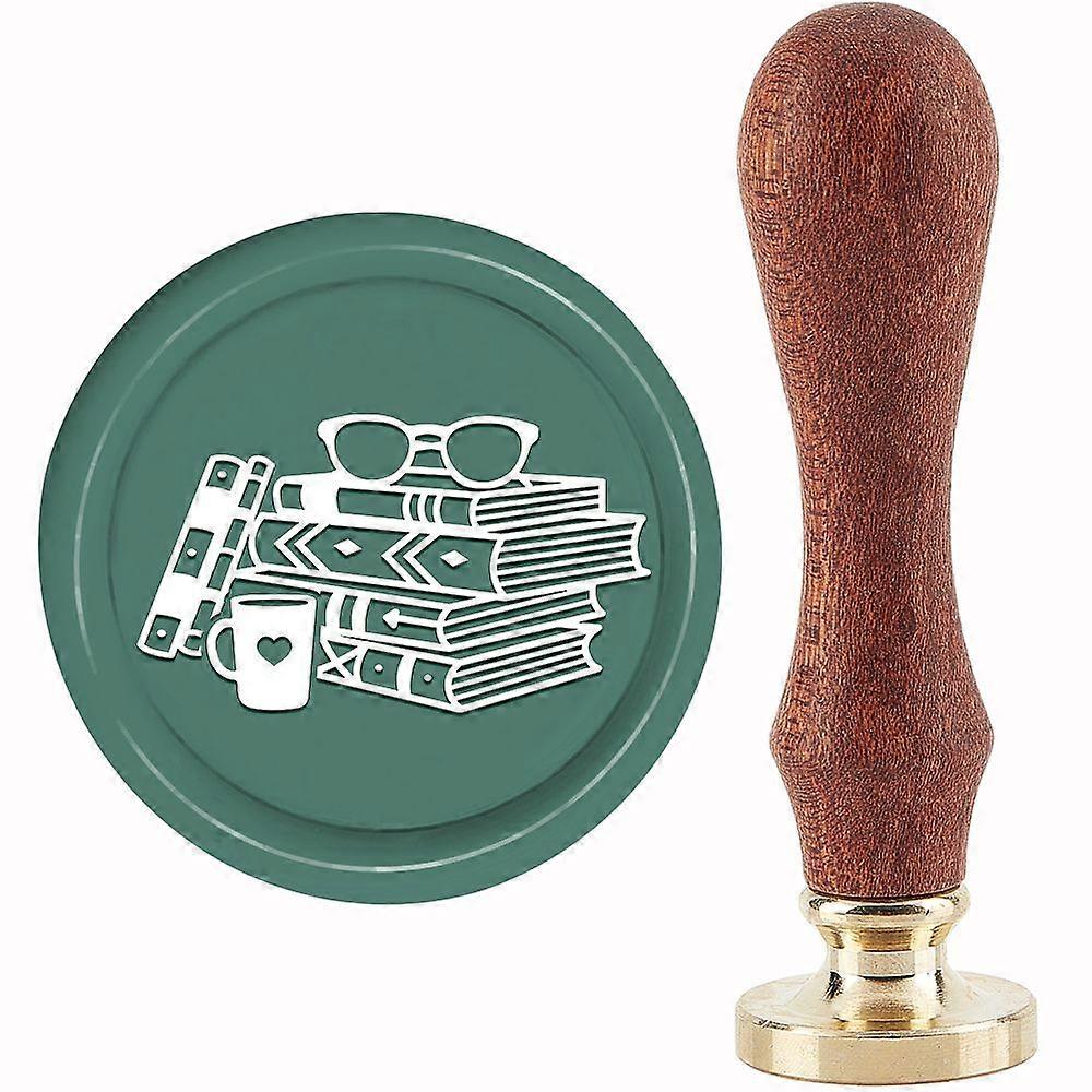Book Wax Seal Stamp Glasses Sealing Wax Stamps Coffee Cup 30mm Retro Vintage Removable Brass Stamp Head with Wood Handle for Wedding Invitations Envel