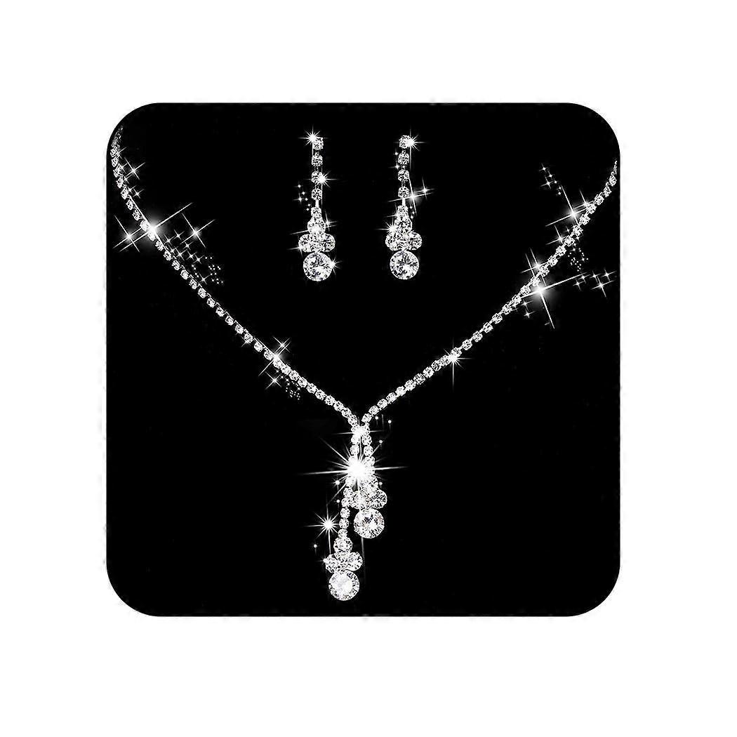 Bridesmaid Jewelry Sets Elegant Silver Crystal Necklace and Earrings Set for Women, Perfect for Bridal and Formal Dresses
