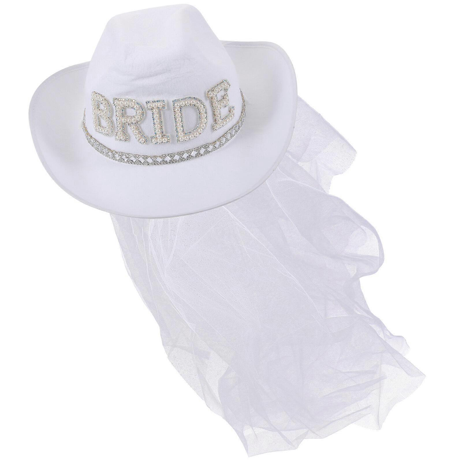 Bridal Cowboy Hat With Veil Bachelorette Party Hat Women Cowgirl Hat Wedding Bridal Decoration