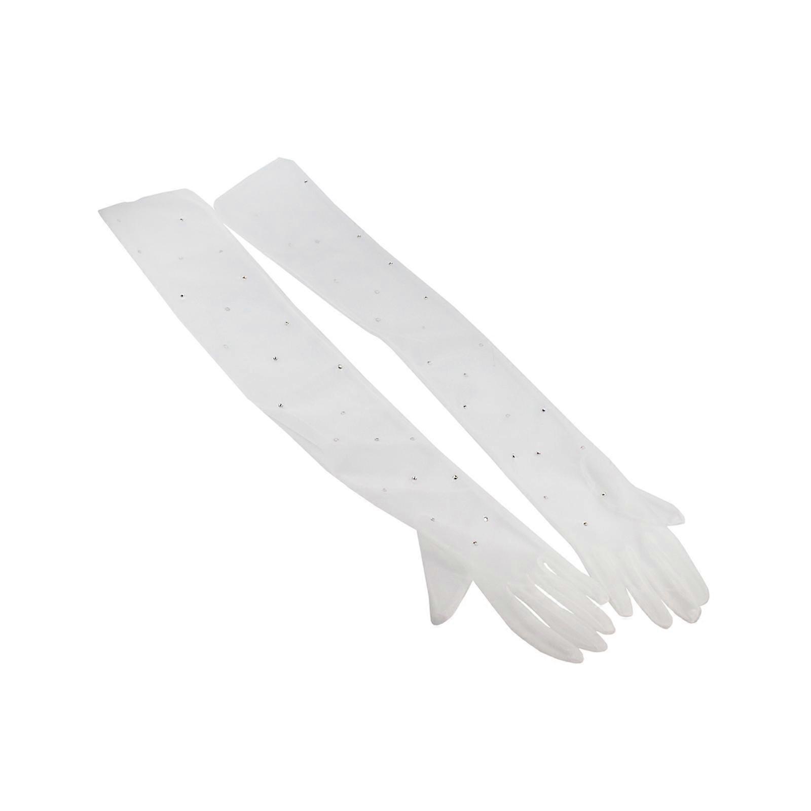 Description: Pull On closure Hand Wash Only Bridal Gloves are made of premium tulle, light in weight, soft and breathable, designed with rhinestone, looks more charming and elegant. Classic Gloves is approx 26.77inch(68cm), suitable for most women, Dress Gloves are easy to wear and take off, comfortable to your delicate skin. Simple but Classic and Elegant: These stunning tulle wedding gloves bring dramatics and add style, grace and refinement to any occasion. Package Includes: 2 Bridal Gloves Note: Please allow slightly errors due to manual measurement and different monitors.