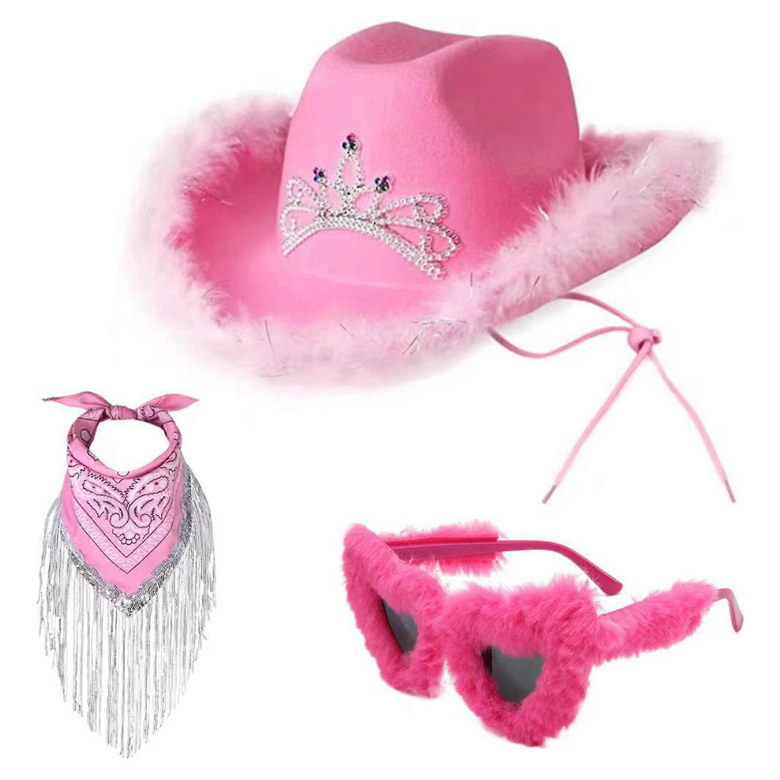 Western Cowboy Hats Eyewear for Bridal Shower Cowgirl Bandanas Costume Set Female NightClub Dress Up Masquerades Outfit Pink