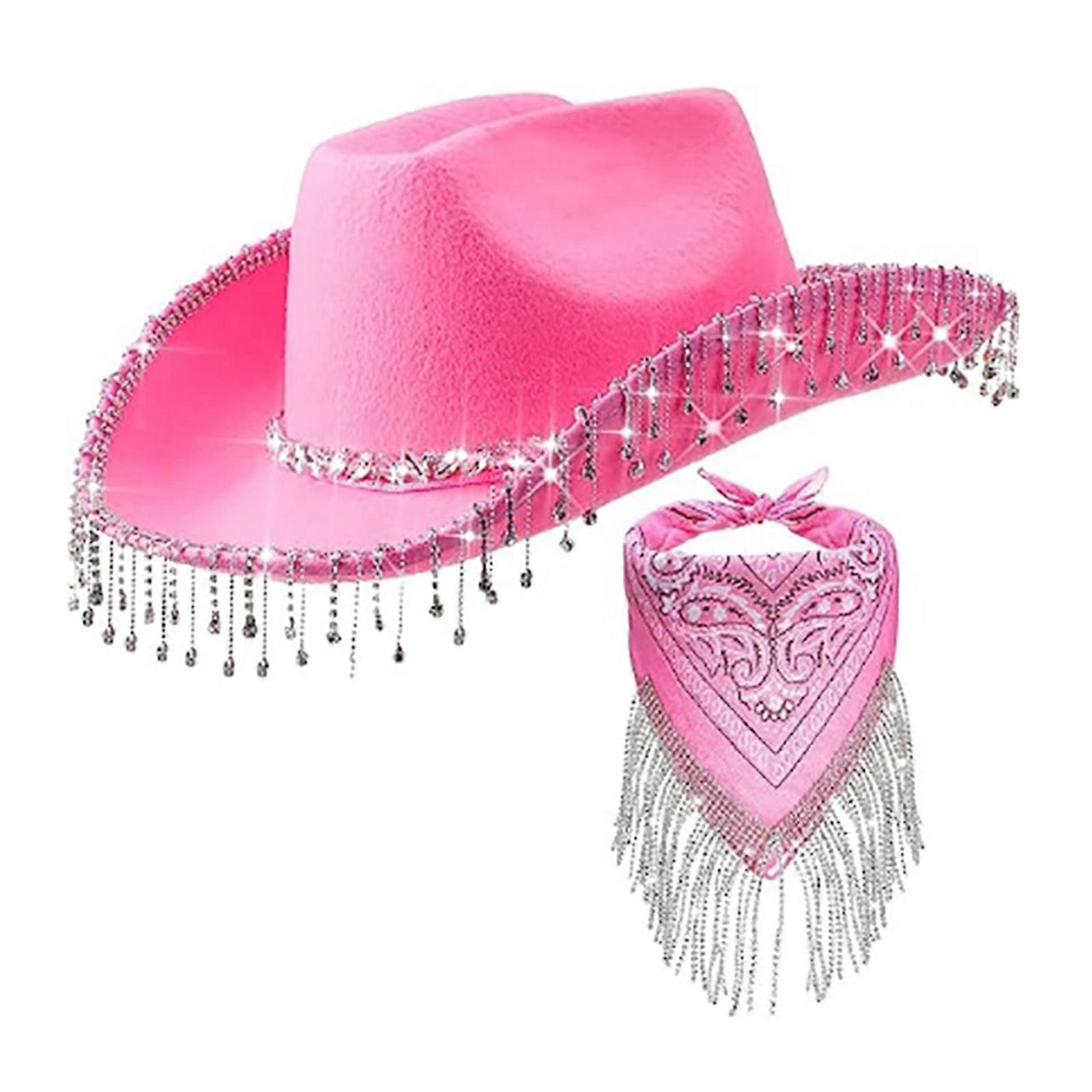 WesternStyle Cowboy Hat for Bridal Shower Cowgirl Hat Headscarf Costume Set Female Headwear Night Club Halloween Outfit Pink