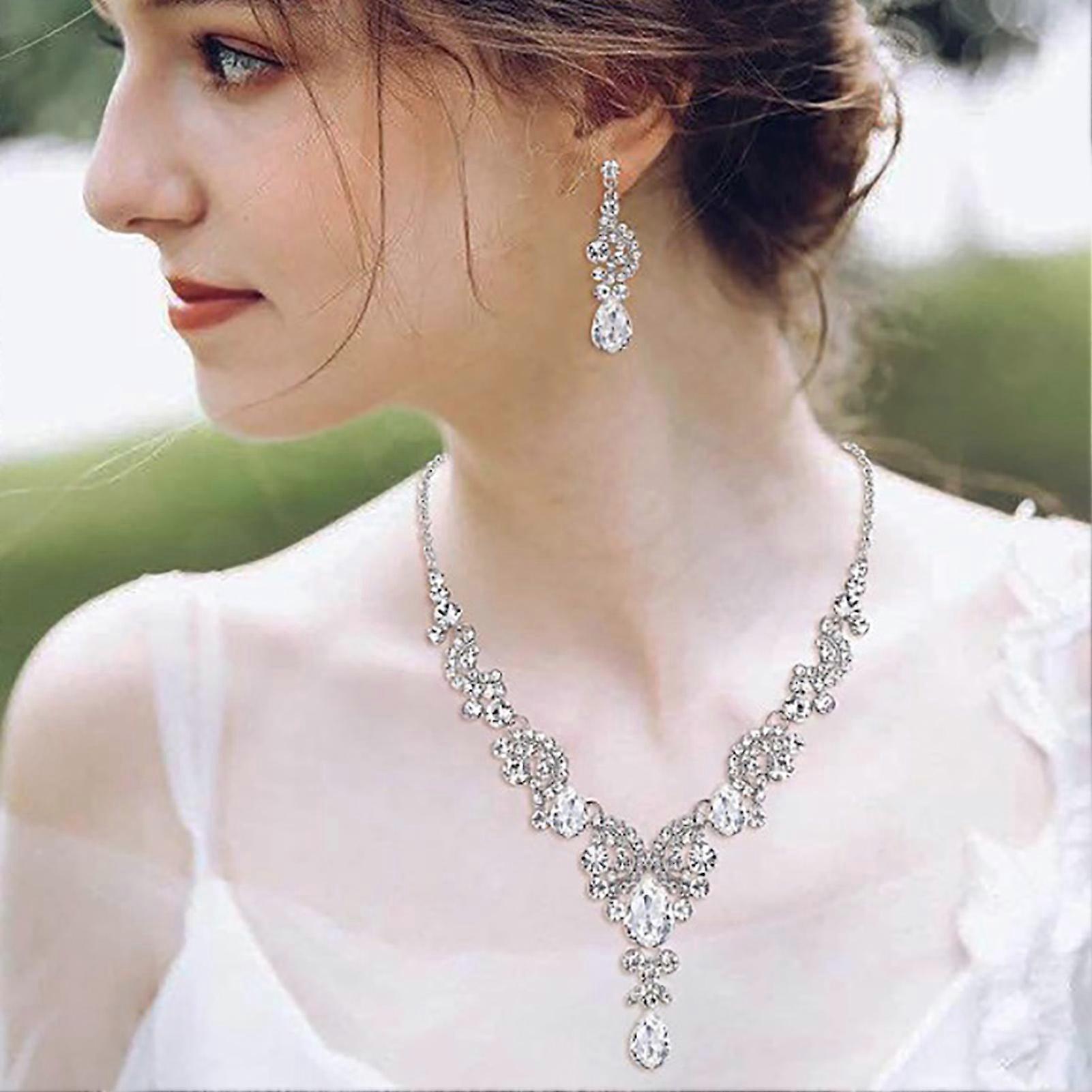 Bridal Crystal Necklace Earrings Set Women Decorative Jewelry for Wedding Anniversary Item Type: Necklace Earring Kit Color: Silver White Material: Rhinestone, Crystal, Alloy Earring Size: Approx. 6.3 x 1.8cm / 2.5 x 0.7in Necklace Size: Approx. 48 x 5.5cm / 18.9 x 2.2in Product Weight: Approx. 63g / 2.2oz Applicable: Women Product Use: Suitable for dancing, dating, gathering, birthday, Christmas, anniversary, Valentine Day and daily use
