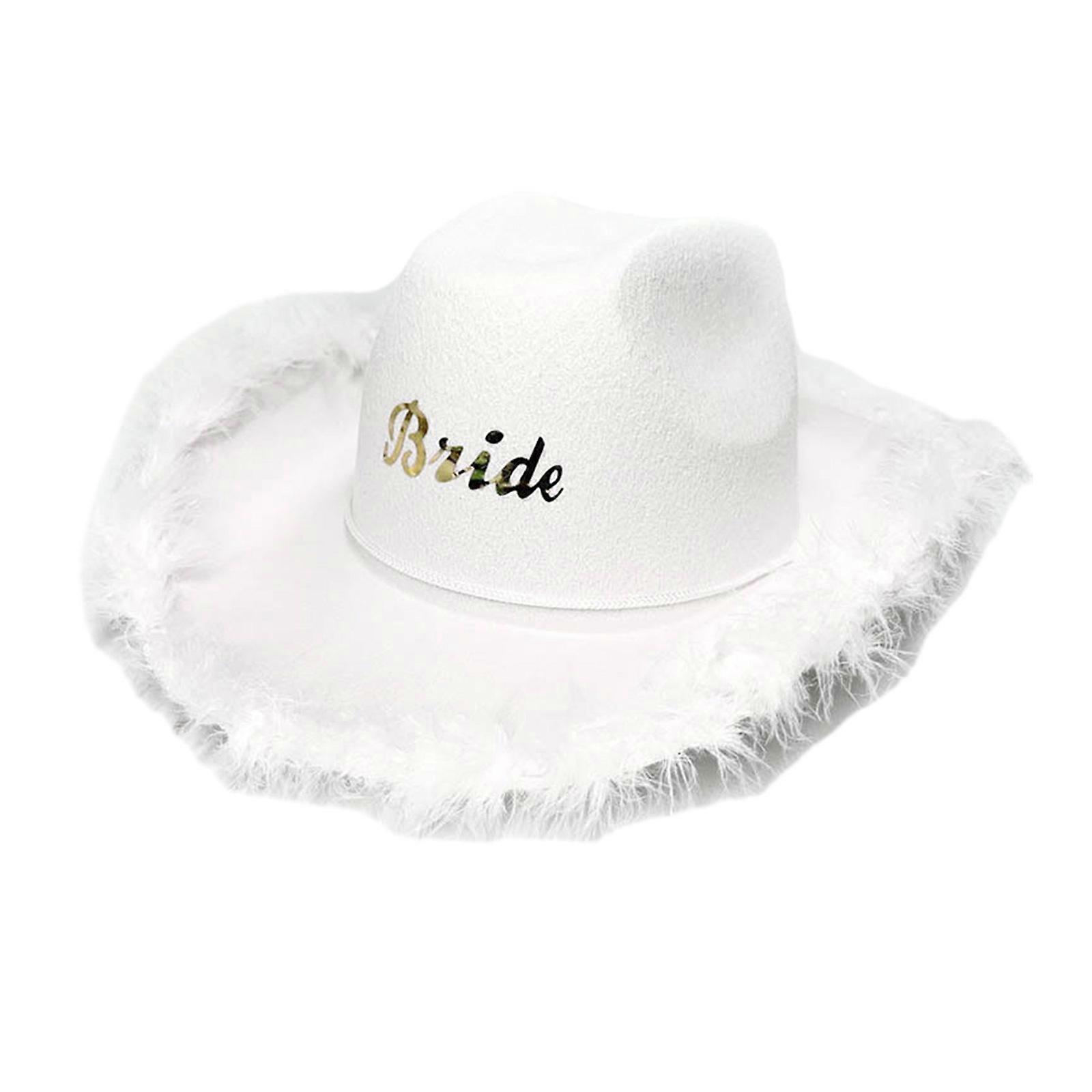 Fashion Cowboy Hat for Bridal Bridesmaids Feather Trim Cowboy Hat Role Play Costume Halloween Party Headwear Decoration White