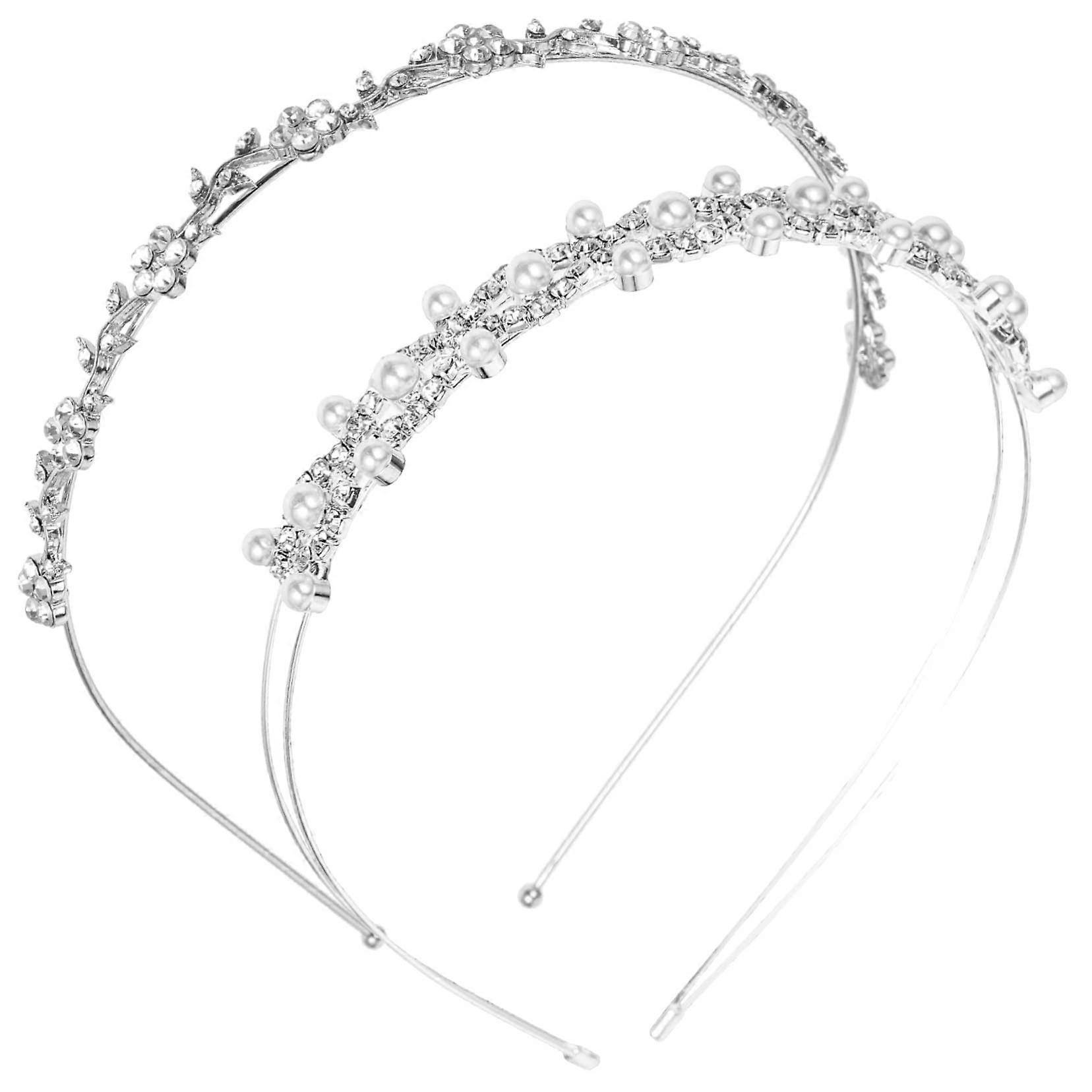 Bridal Hair Accessories Pearl Rhinestone Headband, Elegant 2-Piece Set for Weddings and Bridesmaids