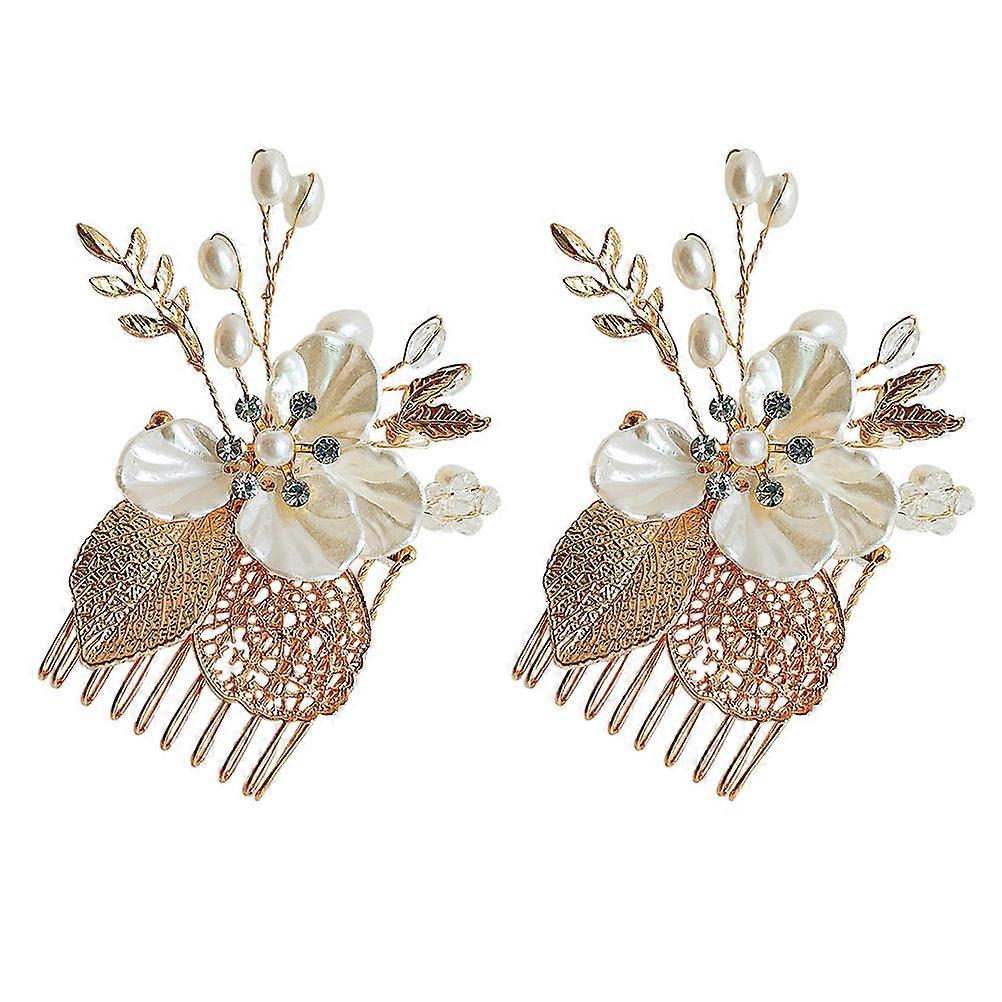 Bridal Hair Piece 2Pcs Floral Hair Accessories For Baby Showers 6.5X5X2CM Golden Adjustable Style