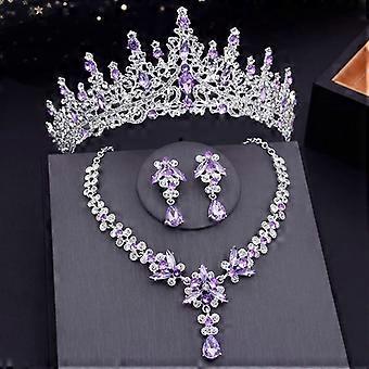 Bridal Headdress Set Crown Necklace Earrings three Piece Tiaras Suitable for Women s Wedding Dress Birthday Bride Jewelry Set