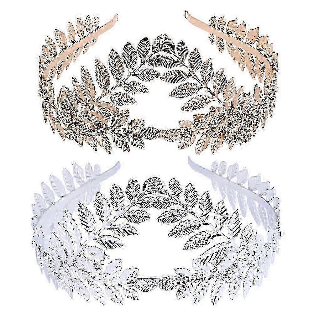 Bridal Headband 2 Pcs Alloy Metal Leaf Crown Vine Headband Leaf Tiara Wedding Headpiece Bridesmaid Prom Hair Accessories for Women Girls