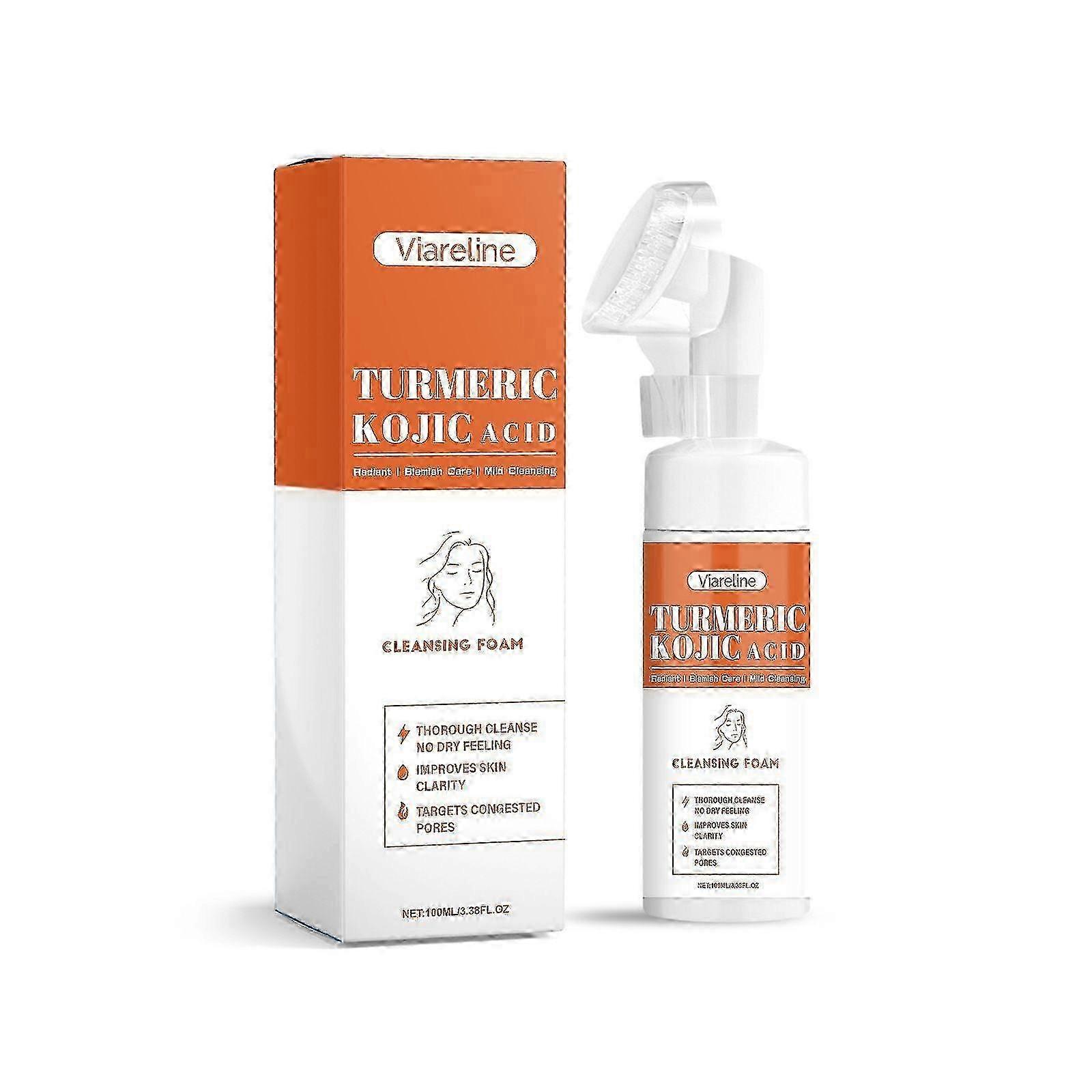 Brightening Turmeric Kojic Acid Face Wash with Silicone Brush - Exfoliating Cleanser for All Skin Types, 120ml