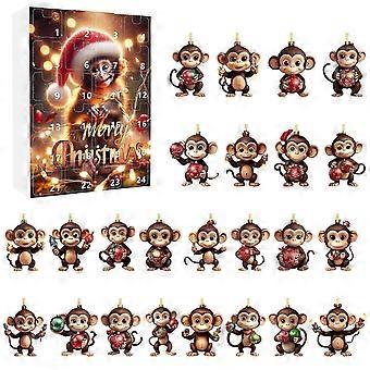 Blind Box Christmas Countdown 24 Days Calendar Blind Box Acrylic Cartoon Monkey Christmas Tree Ornament