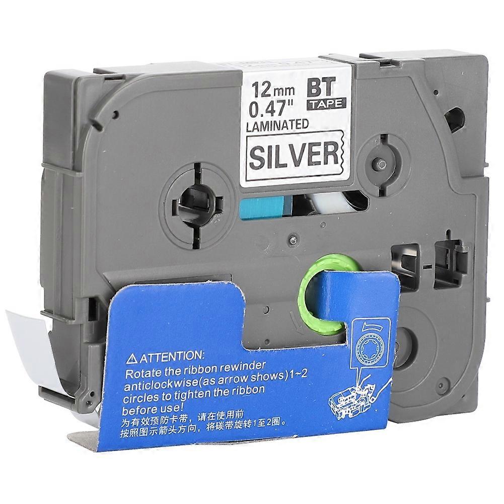 Label Tape Ribbon for Brother Printer Sticker Printing Paper(12mm black on matte silver)