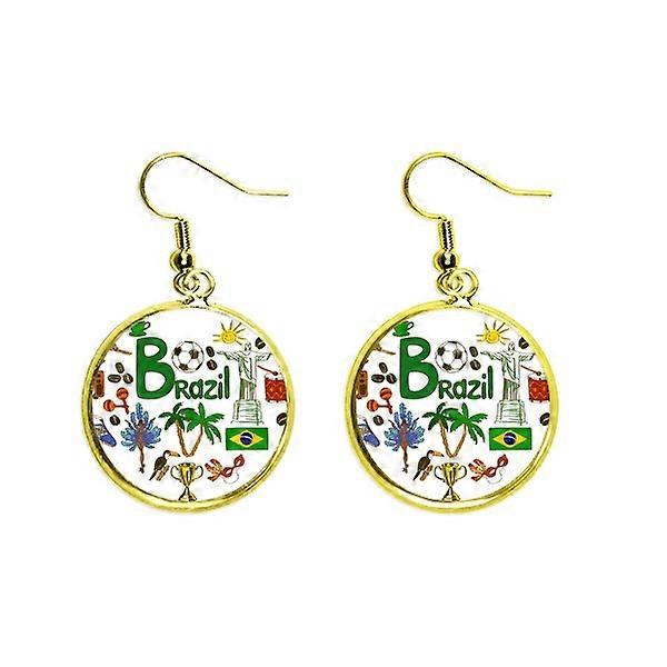 Brazil Love Heart Landscap National Flag Ear Dangle Golden Drop Earring Jewelry Woman