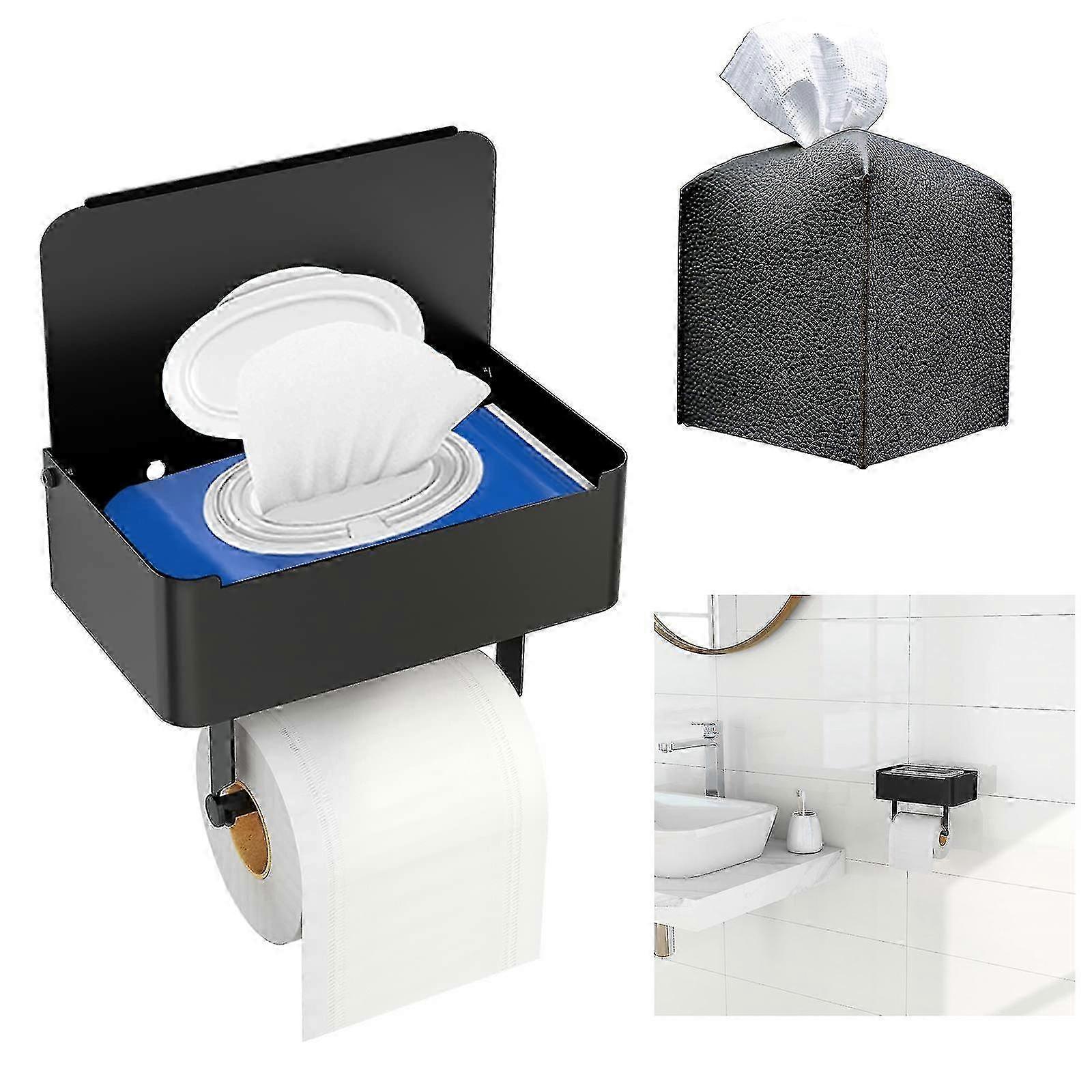 Brushed Nickel Toilet Paper Holder with Shelf & Wipes Dispenser for Bathroom